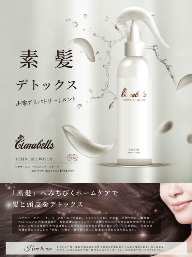化学薬剤、スタイリング剤、ケア剤、皮脂や汚れ、重金属など、シャンプーで落としきれていない頭皮と髪の有害な毒性物質を除去し、「素髪」へ。